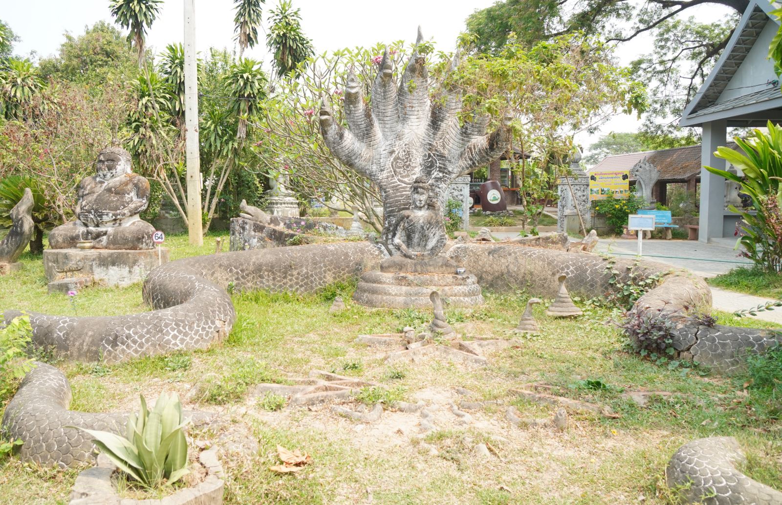 Trong khu vườn này, du khách sẽ bắt gặp nhiều hình tượng rắn thần Naga – một linh vật mà người Lào tin rằng sẽ bảo vệ và che chở cho con người.
