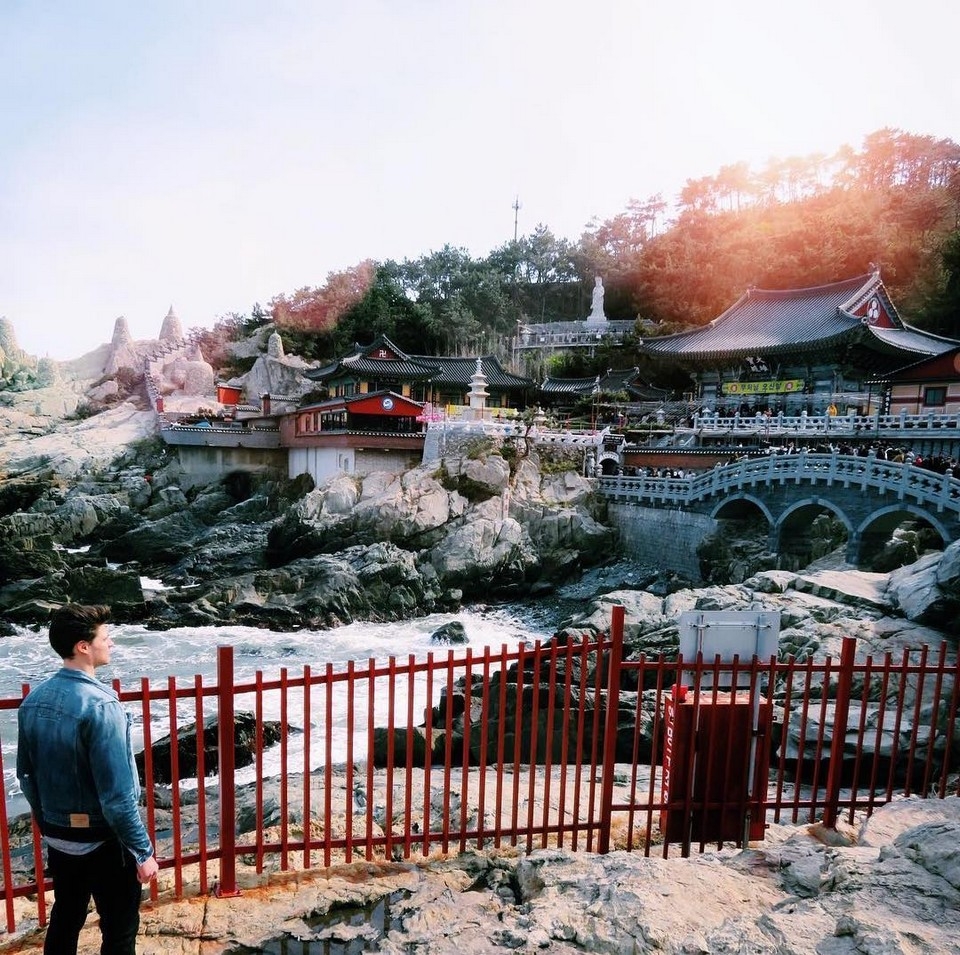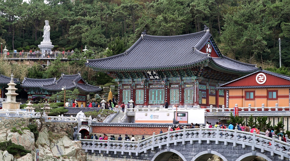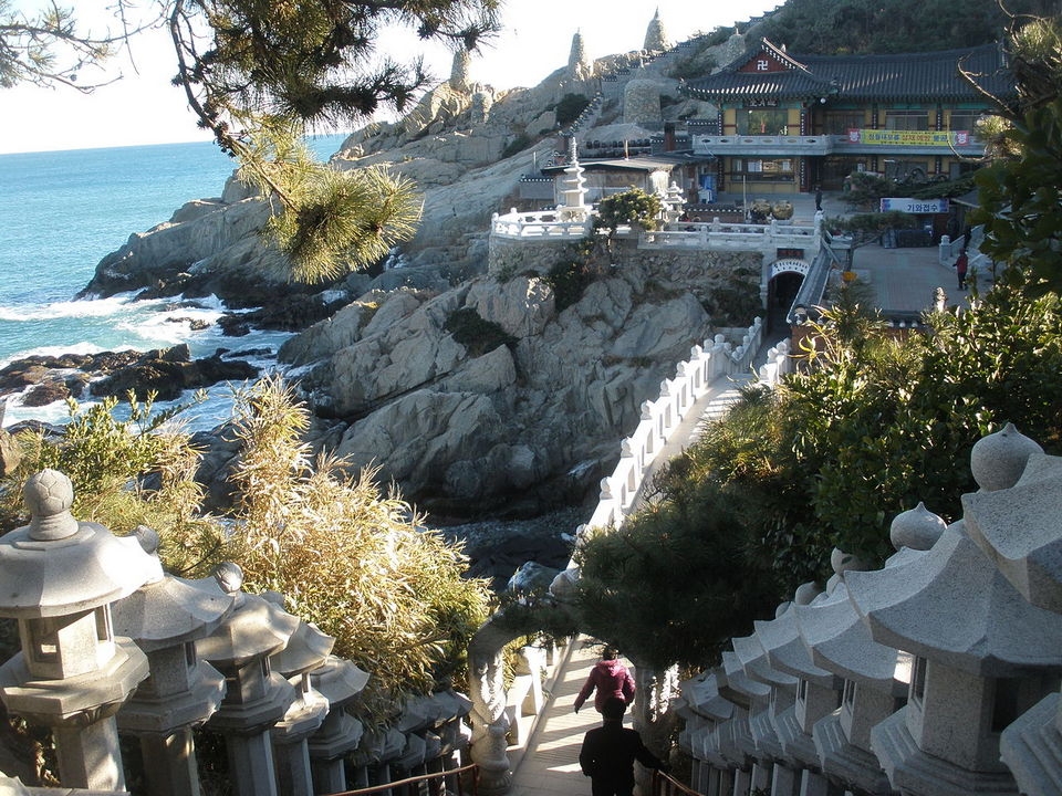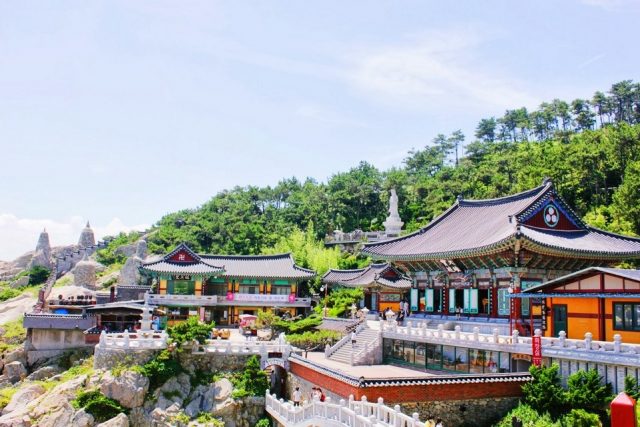 Hầu hết các ngôi chùa ở Hàn Quốc đều được xây dựng trên núi, nhưng chùa Haedong Yonggungsa nằm ngay sát vách núi bên bờ biển, lưng tựa vào núi tạo nên một bầu không khí vô cùng thoáng đãng và yên bình.