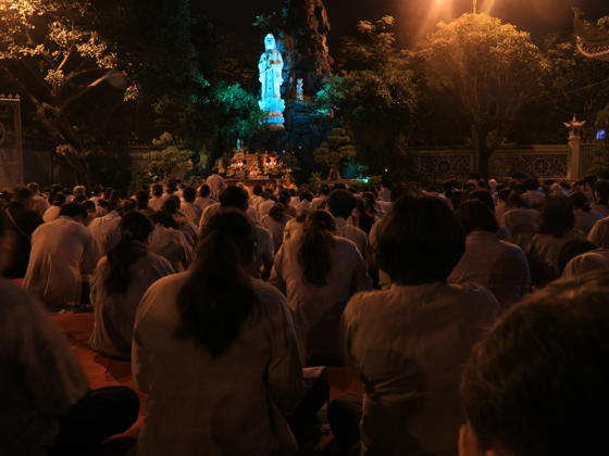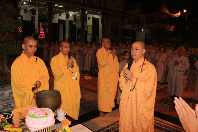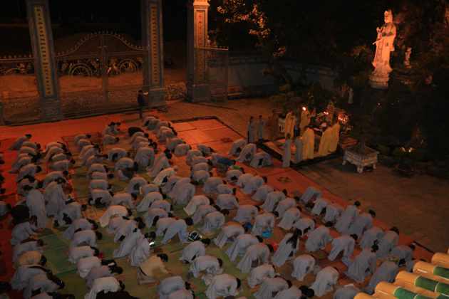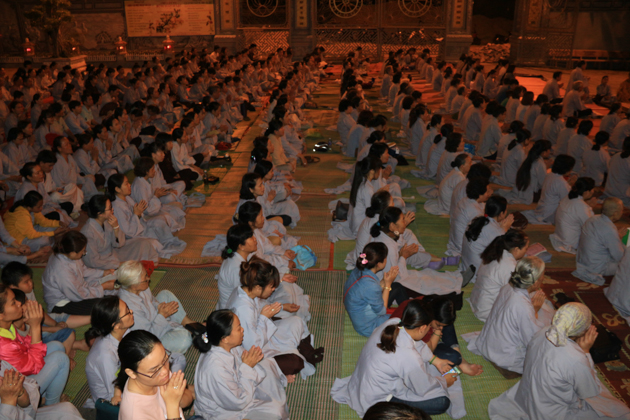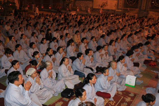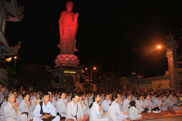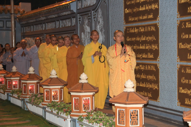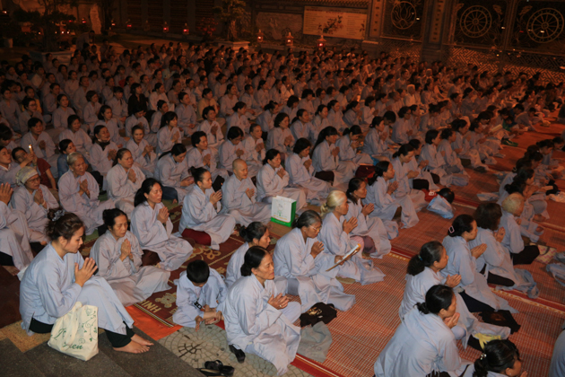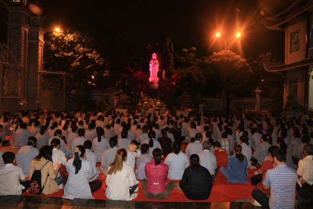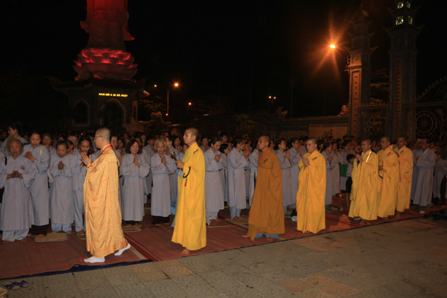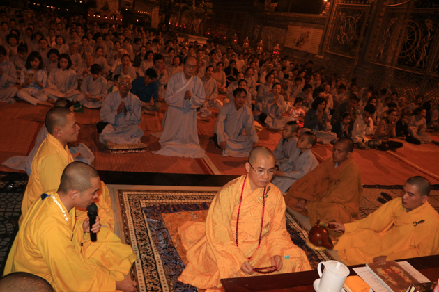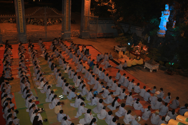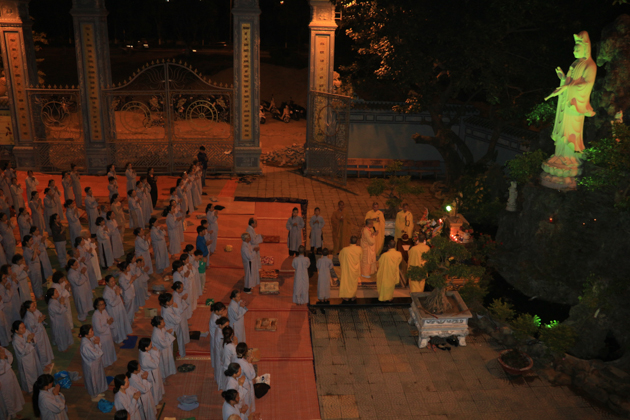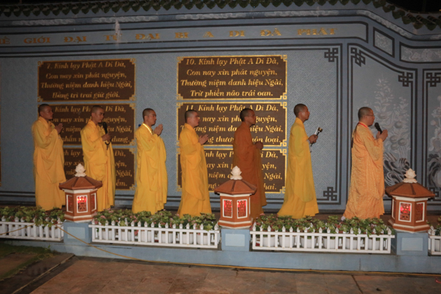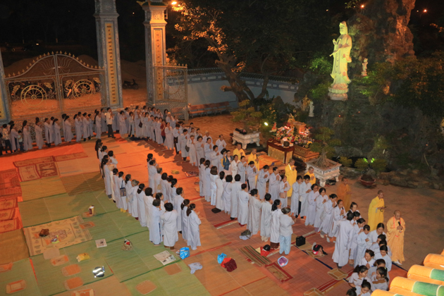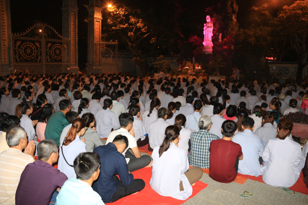 Sau lễ quy y Tam Bảo, ĐĐ. Thích Thông Đạo cùng Tăng chúng đã hướng dẫn đạo hữu Phật tử trì tụng chú Đại Bi, tưởng nhớ công hạnh của Bồ Tát Quán Thế Âm.