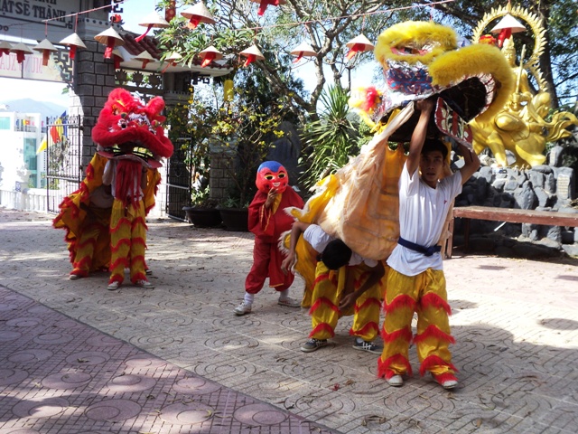 Sau tiếng trống múa lân và đoàn lân tưng bừng rộn rã chào mừng, Hòa thượng Thích Trí Viên và Đại diện Ban Hộ tự đã cắt băng khai mạc Góc Xuân, một cảnh quang vườn quê đầy hoa và cây lá bên cạnh đống rơm còn thơm mùa lúa chín hiện ra giữa lòng thành phố biển Nha trang.