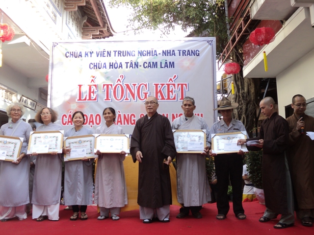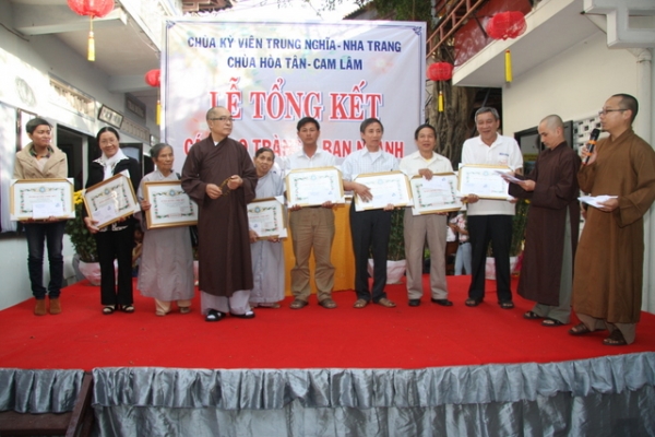 Nhân dịp này, ĐĐ. Thích Huệ Toàn đọc quyết định tuyên dương 2 Đạo tràng, 5 chúng, 8 Ban ngành, và 10 cá nhân đã tinh tấn tham gia tu học và và hoàn thành xuất sắc Phật sự năm 2013. Ban đạo từ HT Thích Trí Viên đã tán thán công đức của các đạo tràng, các chúng, các Ban ngành và quý Phật tử đã cùng chung vai, góp sức làm nên thành tựu Phật sự năm 2013.