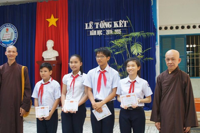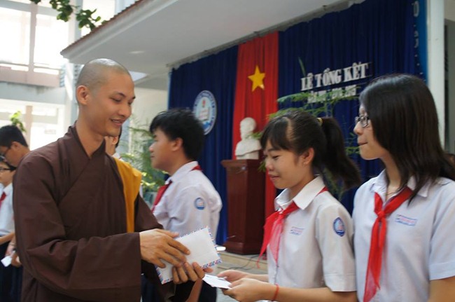 Chùa Linh Quang đã đến thăm và trao học bổng cho các em học sinh học giỏi và đặc biệt là các em có hoàn cảnh khó khăn, gồm 11 em học sinh nghéo vượt khó đạt học sinh xuất sắc và 30 em thi vào Lê Quý Đôn.