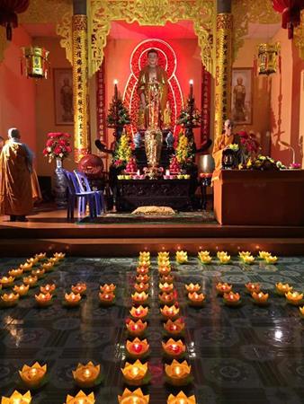 Tối 15-12 (17-11-Bính Thân), Đạo tràng Niệm Phật chùa Sắc tứ Minh Thiện (thôn Thanh Minh, xã Diên Lạc, huyện Diên Khánh, tỉnh Khánh Hòa) đã trang nghiêm tổ chức Lễ Vía Phật A Di Đà, đêm hội hoa đăng cúng dường khánh đản với sự chứng minh dự của Thượng tọa Thích Thiện Thông trụ trì và chư Tôn đức Tăng Ni trong huyện cùng hơn 200 Phật tử tham dự.