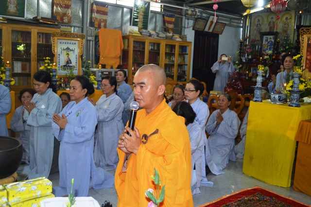 Đại đức Thích Như Nghĩa – Giám tự chùa Thiên Long dâng lời tác bạch cúng dường Trai tăng – Theo đó, bổn tự chúng con vâng lời Phật dạy, nương theo hiếu hạnh Tôn giả Mục Kiền Liên đốt nén tâm hương, sắm sinh lễ vật cúng dường mười phương chư Phật, cúng dường hiện tiền chư Tôn Đại đức Tăng già kinh mừng chư tôn giáo phẩm thêm một tuổi hạ, nhờ chủng đức đại Tăng nguyện cầu cửu huyền thất tổ và tất cả chúng sinh đang trầm luân trong cảnh giới đau khổ, đều được an lạc, giải thoát và cầu nguyên công tác trùng hưng ngôi bảo điện Thiên Long sớm được viên thành.