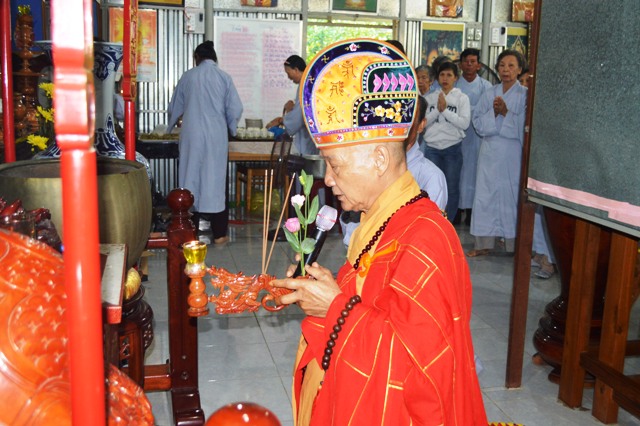 Đại lễ Vu Lan Báo hiếu – Pháp hội Địa Tạng cứu độ vong nhân thực hiện theo nghi lễ Phật giáo truyền thống. Hòa thượng chứng minh niệm hương, bạch Phật, Thượng phướn, HT. Thích Như Lưu – Ủy viên Ban Nghi lễ GHPGVN tỉnh Khánh Hòa – chủ sám Khai kinh, cúng ngọ, Tiến Giác linh Tổ, thỉnh tiên linh tùng tự ký tự, công đức tiên linh. HT.Thích Tịnh Nghiêm- Trưởng BTS Phật giáo Cam Ranh chứng trai, cầu nguyện quốc thái dân an, thế giới hòa bình, chúng sinh an lạc. TT.Thích Thiện Huệ – Thư ký Ban nghi lễ GHPGVN tỉnh Khánh Hòa- Gia trì hiển mật, Ban kinh sư chư Tôn đức Tông phong Tổ đình Nghĩa Phương- Đăng đàn Chẩn tế phổ thí âm linh cửu huyền thất tổ, chiến sĩ trận vong, đồng bào tử nạn, tai nạn giao thông, sút sảo tảo thương, âm hồn, cô hồn, cầu âm siêu dương thái.