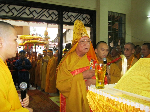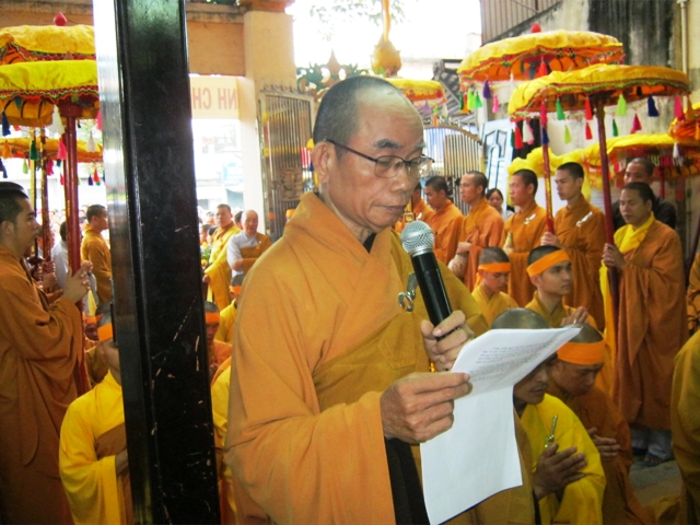 Lễ tưởng niệm được tổ chức trang nghiêm trọng thể thắm tình pháp lữ. HT. Thích Nguyên Quang- Phó BTS kiêm Chánh Thư Ký Phật giáo Khánh Hòa cung tuyên tiểu sử cuộc đời và quá trình hành đạo của cố HT.Thích Thiện Vinh.