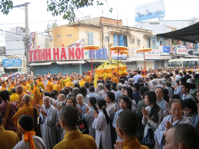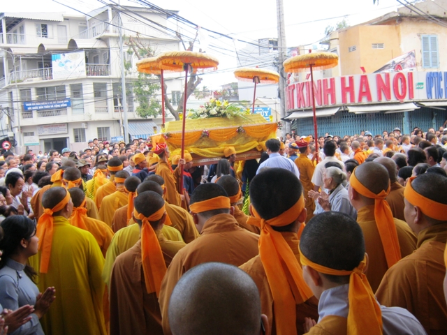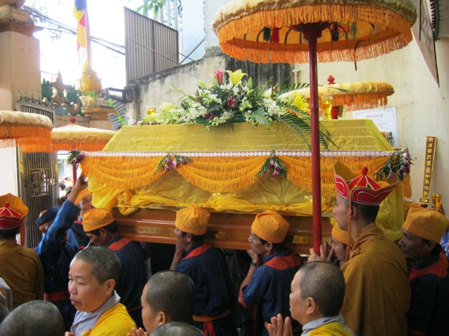 Lễ cung tống kim quan và lễ trà tỳ thực hiện theo nghi thức truyền thống do HT. Thích Như Ý, Phất trần, HT.Thích Nhuận Thông chấp lệnh, TT.Thích Tâm Ân, sám chủ – Ban kinh sư Ban Nghi lễ Phật giáo Khánh Hòa tiếp dẫn.