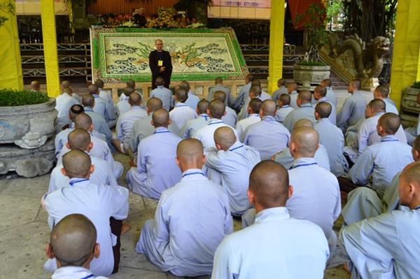 Để chuẩn bị cho ngày mai 19/10/2016 đăng đàn lãnh thọ giới pháp, 690 giới tử gồm 220 xuất gia và 470 tại gia đã  lắng lòng nghe chư Tôn đức hướng dẫn trong sự hân hoan và khát ngưỡng mong chờ đến giờ phút được đăng đàn thọ giới.