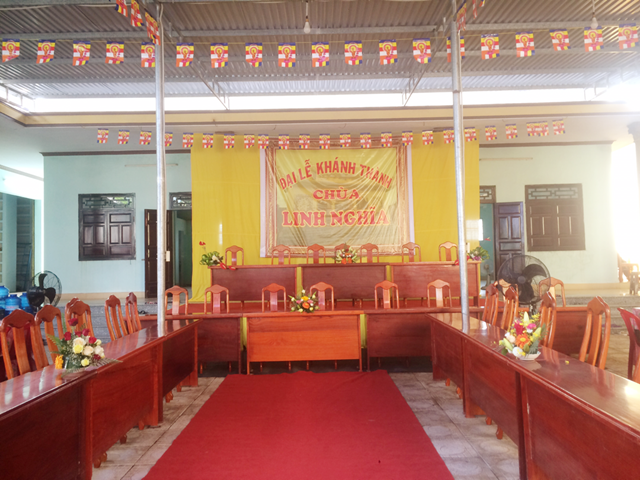 Sau hơn 8 năm qua, được sự yểm trợ của chư Tăng Ni trong Môn phong cũng sự gia tâm của chư tôn Thiền Đức và quý vị Phật tử xa gần, ngôi Đại hùng Bảo điện và các công trình phụ của chùa Linh Nghĩa đã được hoàn thiện. Hy vọng sau khi Chùa Linh Nghĩa được khánh thành sẽ trở thành một ngôi phạm vũ đầy đủ không gian cho phật tử trên địa bàn về sinh hoạt tu học, hộ trì Tam Bảo, hộ trì Phật pháp để Phật Pháp ngày càng được xương minh và phát triển hơn nữa.