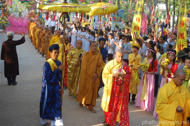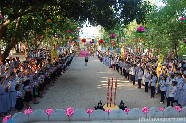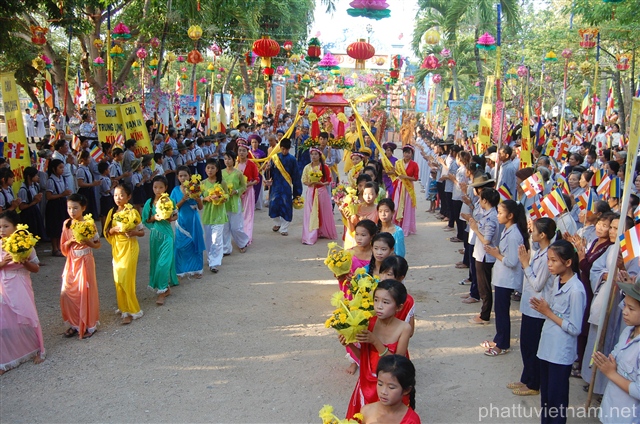 Kính mừng đại lễ, Đoàn sinh GĐPT Tu viện Giác Hải đã múa dâng hoa lên Đức Thế Tôn và chư tôn đức Tăng Ni về tham dự.
