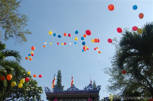 Buổi lễ khép lại trong niềm hân hoan thả chim bồ câu và bong bóng nguyện cầu thế giới hòa bình, chúng sanh an lạc.