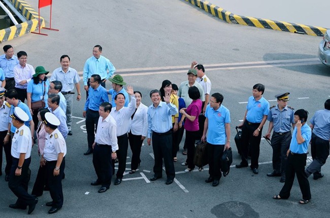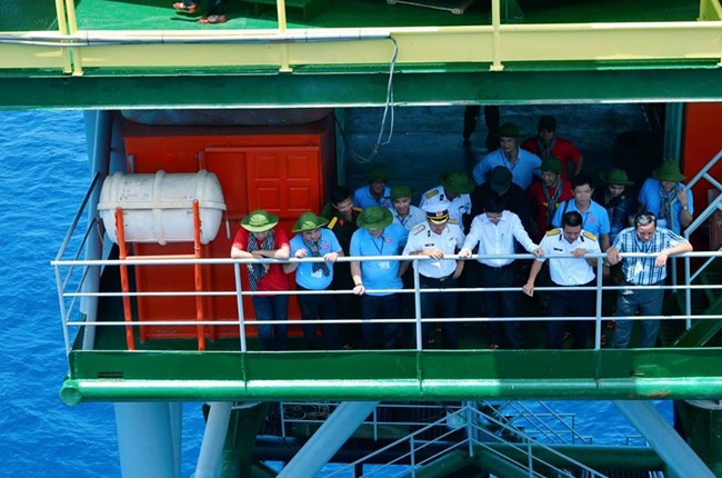 Đoàn đã tham gia chào cờ buổi sáng trên đảo, duyệt đội ngũ, thăm và thắp hương tại Đài Liệt sĩ, nhà tưởng niệm Bác Hồ, viếng và thắp hương mộ liệt sĩ trên đảo Trường Sa.
