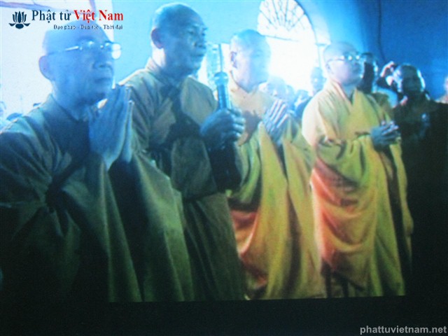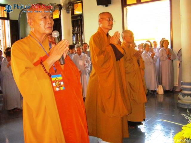 HT.Thích Minh Thông-Phó Ban Trị sự GHPGVN tỉnh Khánh Hòa- Trưởng Ban Tổ chức đã có lời huấn từ. Hòa thương đã nhắc lại ngày này 50 năm trước chùa Long Sơn nơi ta đang đứng đây thép gai giăng khắp lối vào, quân đội với súng gươm tua tủa, ngoại bất nhập, nội bất xuất, như một chiến trường. Nếu không nhờ ngọn lửa thiêng của Bồ tát Quảng Đức thì biết đến bao giờ Phật giáo và dân tộc Việt Nam qua được cơn pháp nạn 1963. Ngài đã đi xa, nhưng công trạng của Bồ tát mãi ghi vào lịch sử dân tộc, tình thương của Ngài vẫn còn đong đầy cho pháp giới chúng sinh qua quả tim bất diệt.