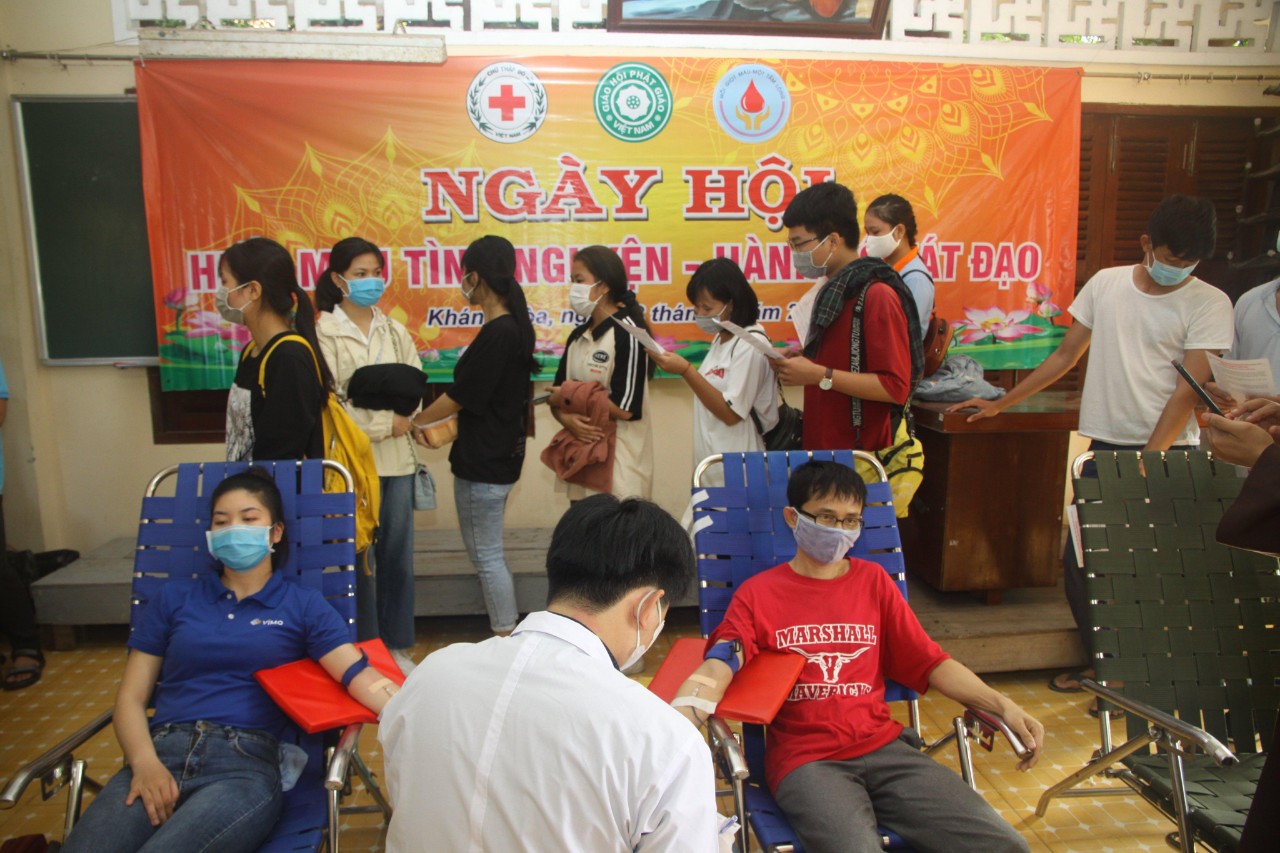 Tình hình dịch Covid – 19 đang diễn biến ngày một phức tạp nhưng xét thấy nguồn máu cần để cứu người đang dẫn cạn kiệt nên BTS GHPGVN Tỉnh Khánh Hòa cùng Hội Chữ Thập Đổ Tỉnh vẫn quyết định duy trì công tác tổ chức hiến máu tình nguyện năm 2020. Những nghi thức hành chính đều được miễn giảm, thay vào đó là việc BTC thường xuyên nhắc nhở người tham dự thực hiện các công tác phòng, chống dịch bệnh như kiểm tra thân nhiệt, sát khuẩn tay, đeo khẩu trang…