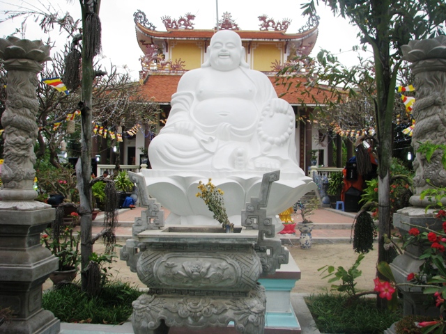 ” Khi xưa, Chùa Thanh Sơn , Sở Dừa bên núi ngắm trăng trong gió mát thảnh thơi ; Từ độ Chùa Thanh Hải , Xóm Mới cảnh quê nhà dẫu biển sóng triều lãng đãng hết lòng xây dựng bỏ chuyện buồn, phải chăng lòng đạo trắng ngần truyền Đệ tử “