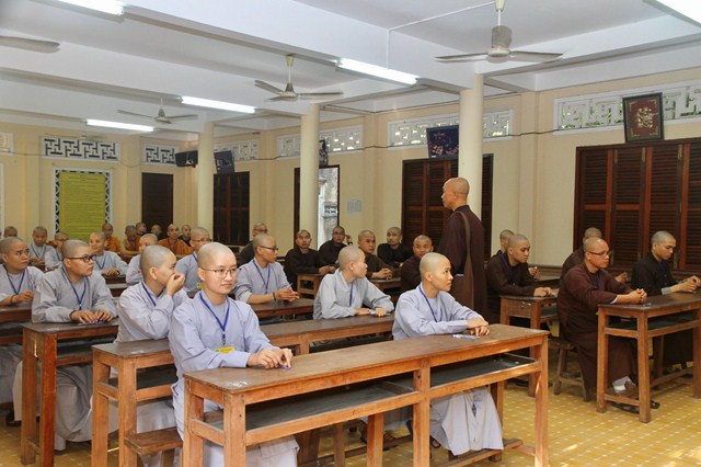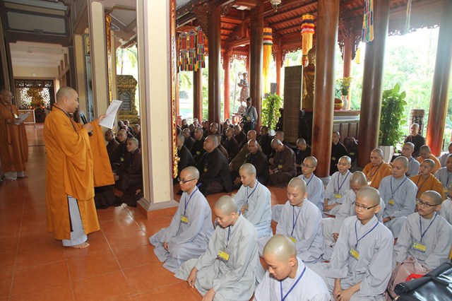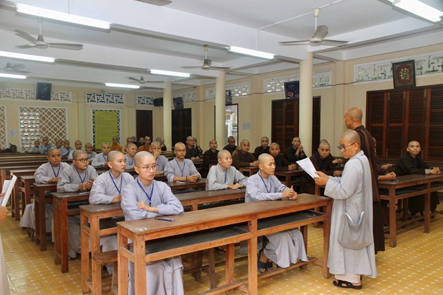 HT Thích Minh Thông phát biểu khai mạc cho kỳ khảo hạch. Hòa thượng nhắc nhở đây là giờ phút quan trọng để đưa quý vị lên một thềm bậc mới trong đời sống xuất gia tu học, vì thế toàn thể giới tử hãy bình tĩnh, tự tin hoàn thành tốt kỳ khảo hạch để chính thức có tên trong danh sách giới tử được tấn đàn của các giới trường năm nay.