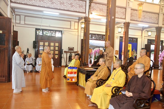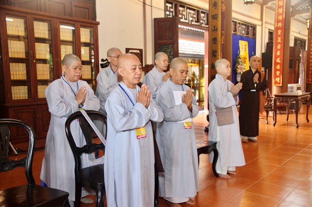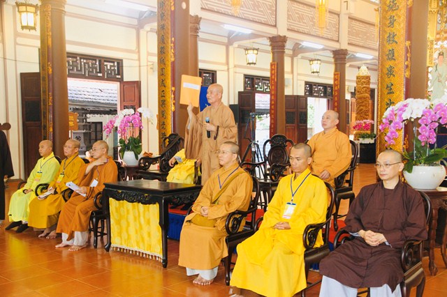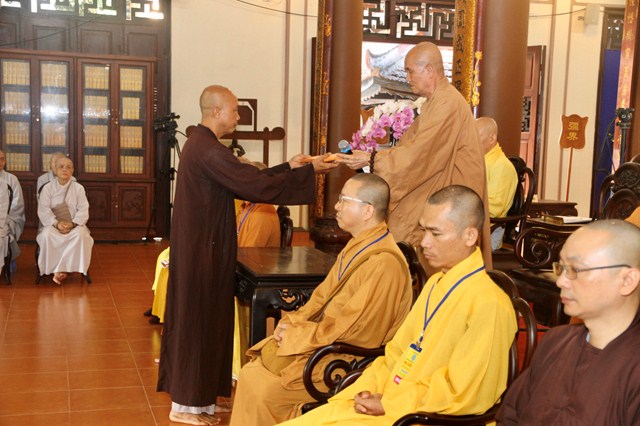 Quang lâm chứng minh và tham dự có HT.Thích Minh Thông – Phó Trưởng Ban Thường trực BTS GHPGVN tỉnh, Phó Ban Tổ chức kiêm Chánh Chủ khảo Đại Giới đàn; HT.Thích Nguyên Quang – Phó Ban Tổ chức; TT.Thích Thiện Phước – Chánh Thư ký BTS, Phó Chủ khảo; TT.Thích Nhật Hiếu – Trưởng Ban Hướng dẫn Phật tử tỉnh, Phó Chủ khảo cùng chư tôn đức trong Ban Kiến Đàn; Hội đồng Khảo thí cùng hơn 300 giới tử Tăng Ni tham dự.