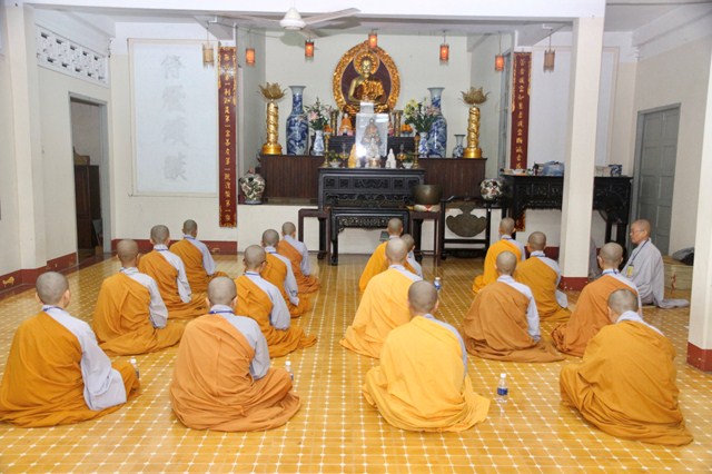 Đúng 18h30 tối cùng ngày, các giới tử Tăng tụng Luật tại Chánh điện Chùa Long Sơn, Khất sĩ tại Giảng đường Tỉnh Hội, Ni tại Giảng đường Trường Trung cấp Phật học Khánh Hòa.