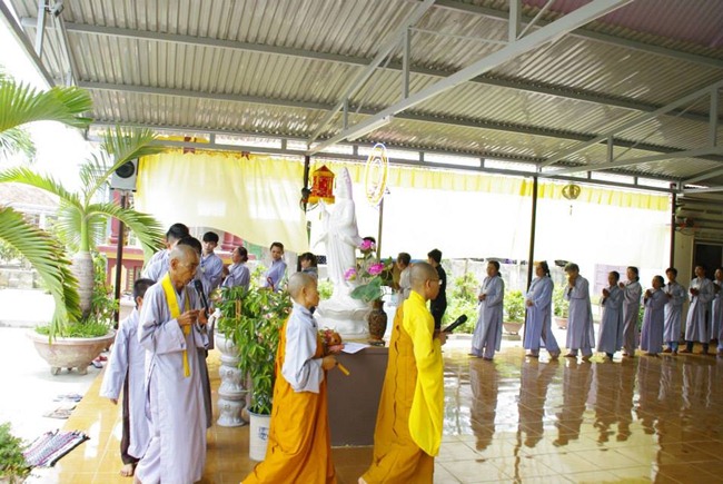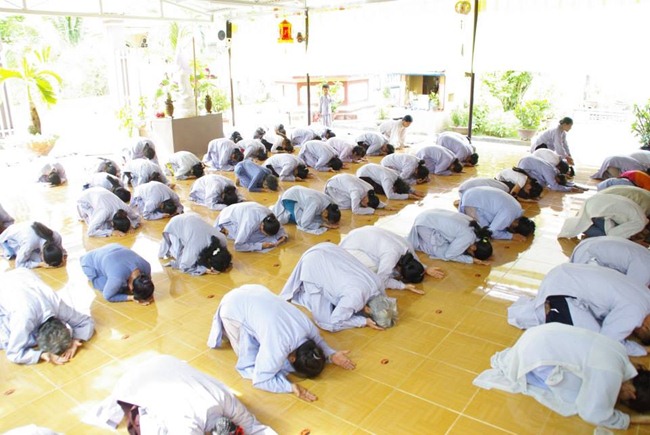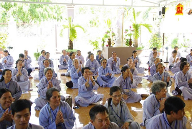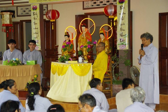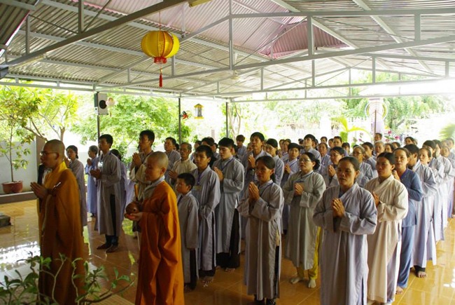 Hướng dẫn Khóa tu Đại đức Thích Pháp Đăng trú trì chùa Minh Đức và hằng trăm Phật tử tại Ninh Hòa tham dự.