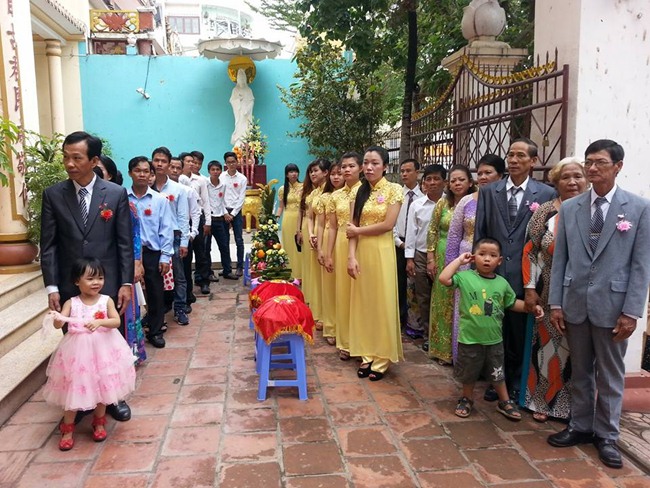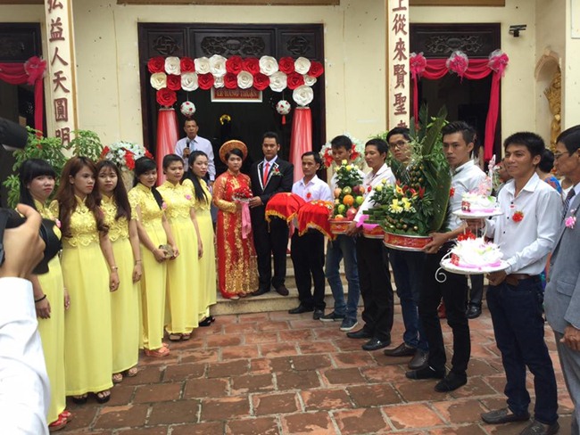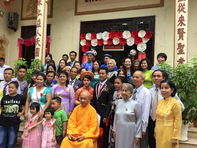 Ban Đại diện chùa Linh Thứu, cha mẹ hai bên, bà con hai họ đã tặng quà chúc phúc đôi tân nương và tân lang. Buổi lễ kết thúc sau phần chụp ảnh lưu niệm.