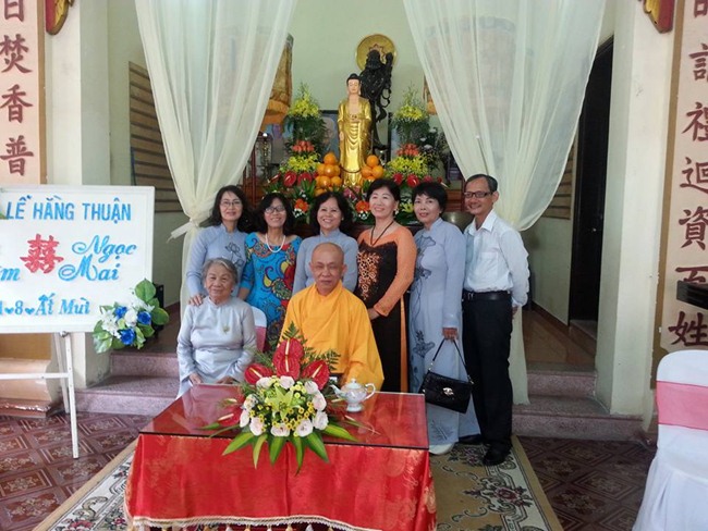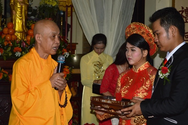Tại lễ đường, Thượng tọa Thích Quảng Tâm đã giảng giải nguồn gốc, ý nghĩa lễ hằng thuận. Thượng tọa đã trao quà, chúc phúc cho đôi bạn trẻ “Trăm năm tình viên mãn. Bạc đầu nghĩa phu thê”.