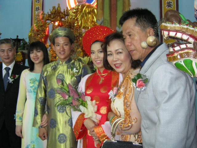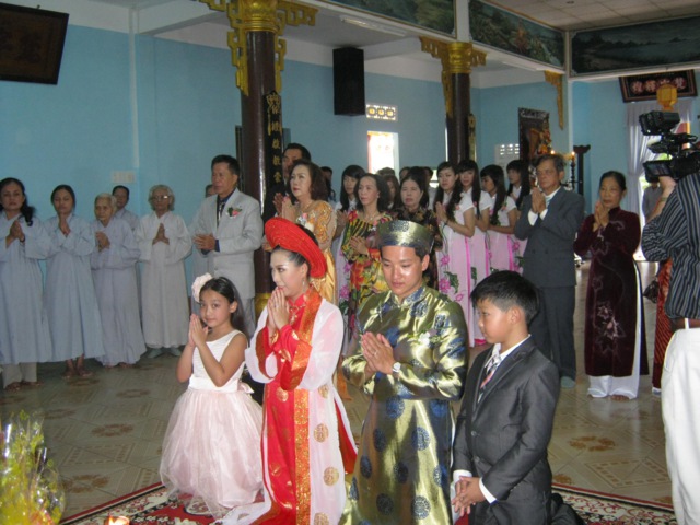 Hòa thượng viện chủ cùng chư tôn đức làm lễ chúc phúc cho đôi tân lang, tân nương.