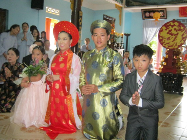 Dưới sự chứng minh của mười phương chư Phật, Hòa thượng viện chủ đã trao nhẫn cho Như Quỳnh và Gia Trí khuyến tấn đôi trẻ phải luôn thực hiện ý nghĩa của chữ “Nhẫn” trong nhẫn cưới là sự nhẫn nhịn, yêu thương nhau trong mọi hoàn cảnh. Bởi vì “Nhẫn nhất thời phong bình lãng tịnh…” (Nhịn một chút biển lặng sóng yên…)
