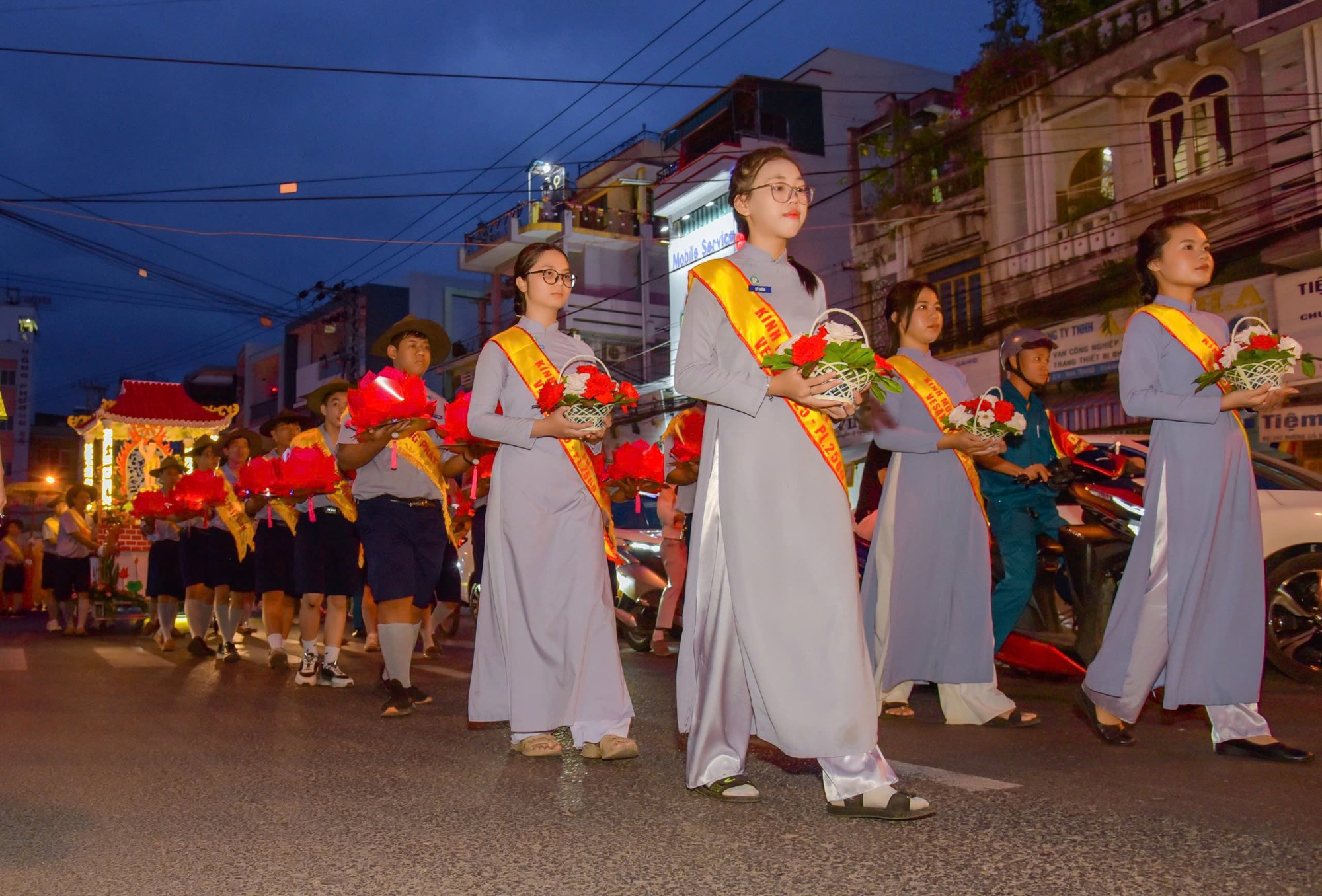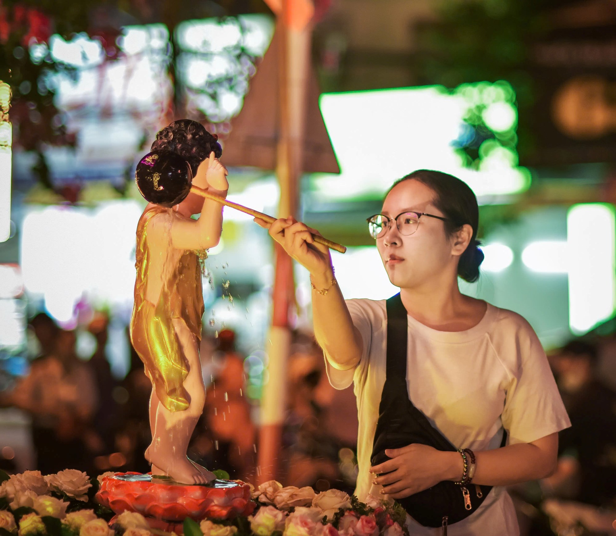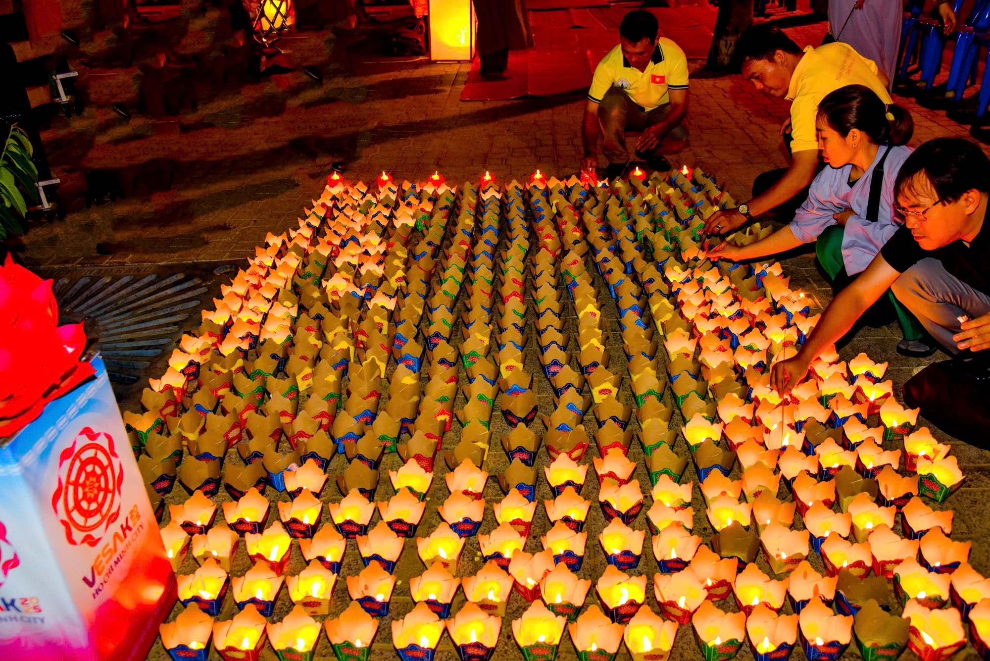 Theo đó, Ban tổ chức đã phát miễn phí 3.000 hoa đăng cho người dân, du khách đến thả xuống sông Cái. Hàng nghìn phật tử, người dân, du khách đã tham gia thả đèn, gửi gắm lời cầu nguyện may mắn, bình an của những chiếc đèn hoa đăng.