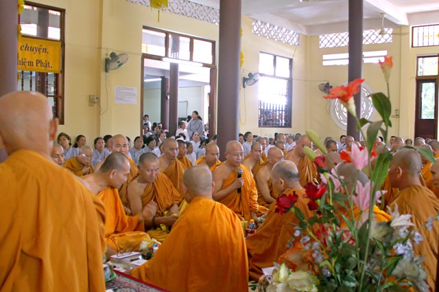 Về chứng minh tham dự có HT Thích Giác Dũng Trưởng G.Đ III hệ phái khất sĩ, HT Thích Giác Thảo – phó G.Đ.III hệ phái khất sĩ cùng chư tôn đức Tăng ni, Môn đồ Pháp quyến và hơn một nghìn Phật tử trong và ngoài tỉnh đồng về tham dự.