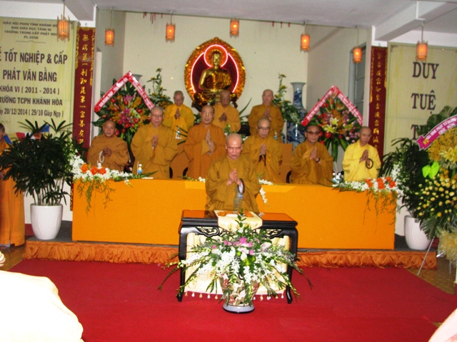 Sáng ngày 20-12-2014 (29-10-Giáp Ngọ,) Ban Giám hiệu trường Trung cấp Phật học Khánh Hòa đã long trọng tổ chức Lễ phát bằng tốt nghiệp khóa VI (2011-2014) tại Hội trường Trường TCPH Khánh Hòa số 20 đường 23 tháng 10, phường Phương Sơn, thành phố Nha Trang.