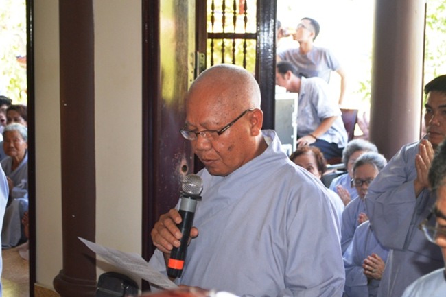 Đạo hữu Như Phước dâng lời tác bạch: Theo lý duyên sinh của vũ trụ, chúng con hiểu được rằng, người Phật tử chúng con không chỉ có ơn Me cha, ơn Thầy Tổ mà còn cả ơn quốc gia và ơn xã hội , để đền đáp Tứ trọng ân đó chúng con xin dấng lên chư Tôn đức Tăng Ni trai phạn cúng dường…