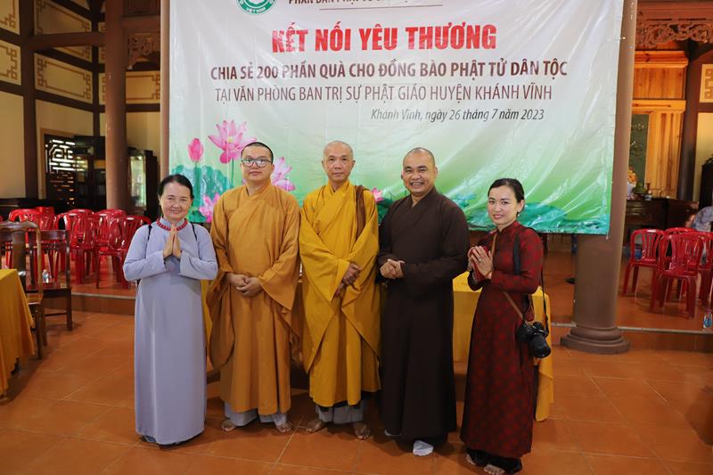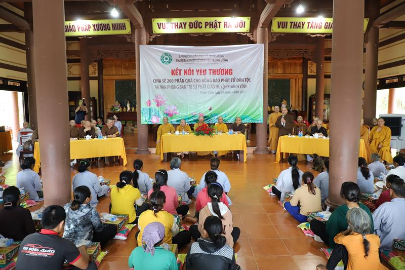 Nhân dịp này phái đoàn đã đến thăm và và tặng 200 phần quà cho đồng bào dân tộc JaRai. tại Vp BTS Phật giáo huyện, chùa Khánh Vĩnh, đường trần Hưng Đạo, thị trấn Khánh Vĩnh, tỉnh Khánh Hòa.
