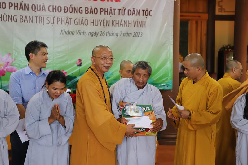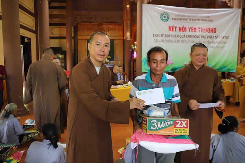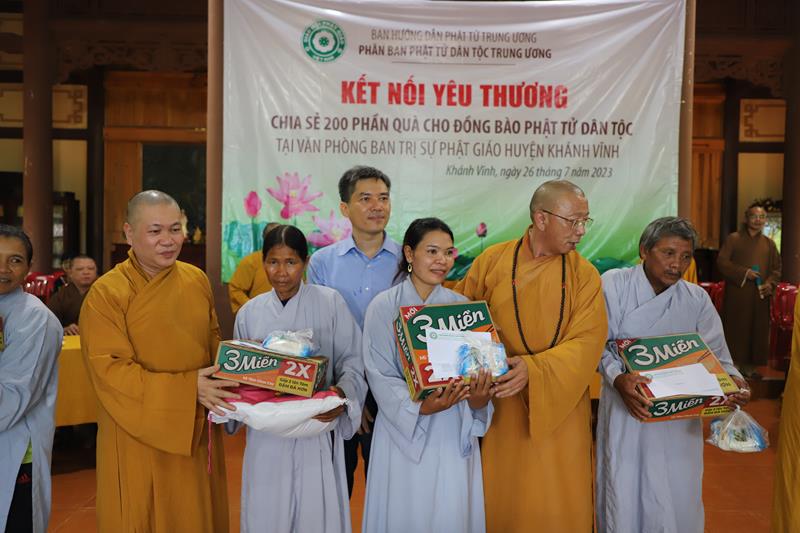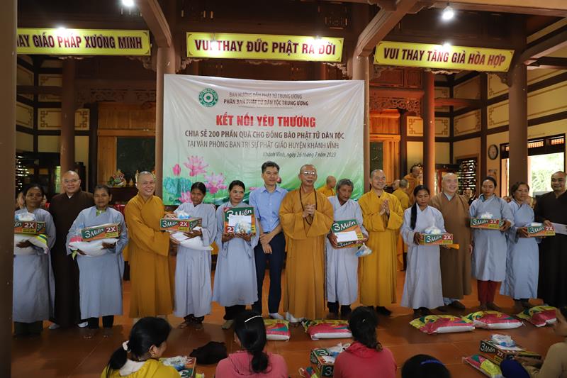 Chiều ngày 26/7/2023 (nhằm ngày 9/6/năm Quý Mão) – Nhân chuyến công tác tại Khánh Hoà – Nha Trang, phái đoàn Phân ban Phật tử Dân tộc TƯ do TT. Thích Quảng Tuấn-Ủy viên Thường trực Hội đồng Trị sự, Phó Trưởng ban Hướng dẫn Phật tử TƯ, Trưởng Phân ban Phật tử Dân tộc dẫn đầu đoàn đã đến Thăm gặp gỡ và trao tặng 200 phần quà cho đồng bào dân tộc JaRai
