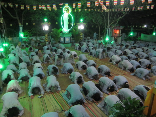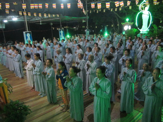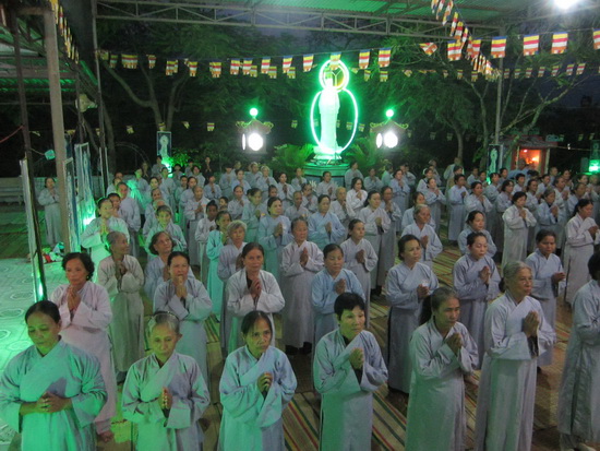 Đại chúng trang nghiêm đem hết thân tâm của mình để trì tụng, âm vang của Đại Bi thần chú đã lan rộng cả vùng đồi núi thôn Khánh Thành, xã Suối Cát trong đêm thanh vắng tạo nên sự màu nhiệm thiêng liêng làm xúc động lòng người.