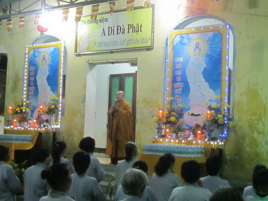 Trước khi vào khóa lễ, thượng tọa trụ trì đã nêu lại hạnh nguyện của Bồ tát Quán Thế Âm, Ngài luôn luôn lắng nghe nơi nào có chúng sanh đau khổ để cứu độ. Sỡ dĩ Ngài có thể nghe được tất cả các các âm thanh kêu cứu của chúng sanh vì tâm Ngài thanh tịnh do vậy tất cả phật tử phải giữ thân tâm mình thật thanh tịnh để cảm ứng đến Ngài. Tất cả công đức trì tụng và lễ lạy sẽ hồi hướng cầu nguyện cho việc trùng tu xây dựng chánh điện chùa sớm được thành tựu.