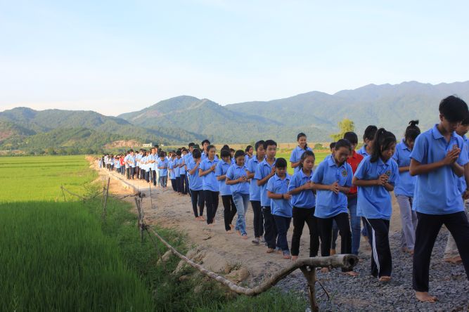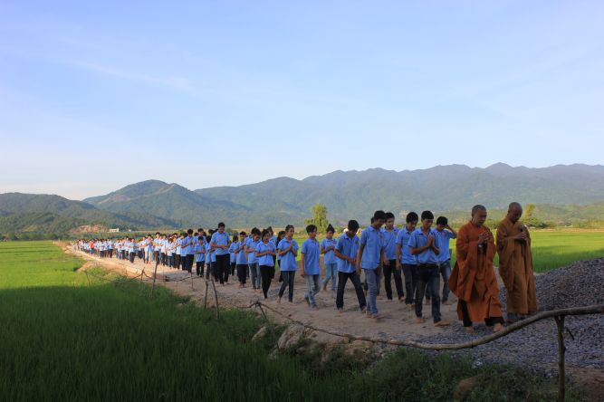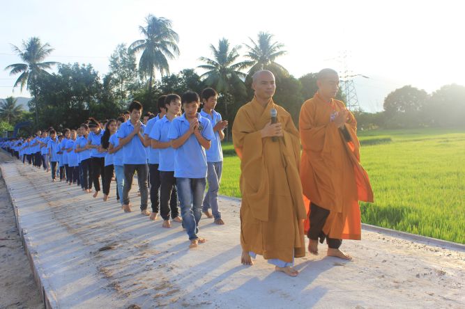 Khóa tu đã đi đến ngày thứ hai, rất nhiều hoạt động ý nghĩa được BTC mang đến cho các bạn trẻ như: Tụng kinh Vu lan, Báo hiếu, kinh hành niệm Phật hưởng khí trời trong mát buổi bình minh, ăn cơm trong chánh niệm…