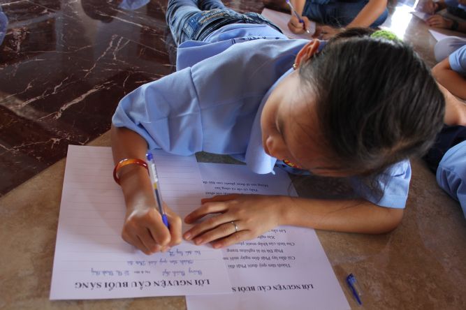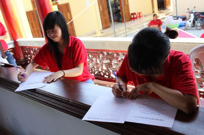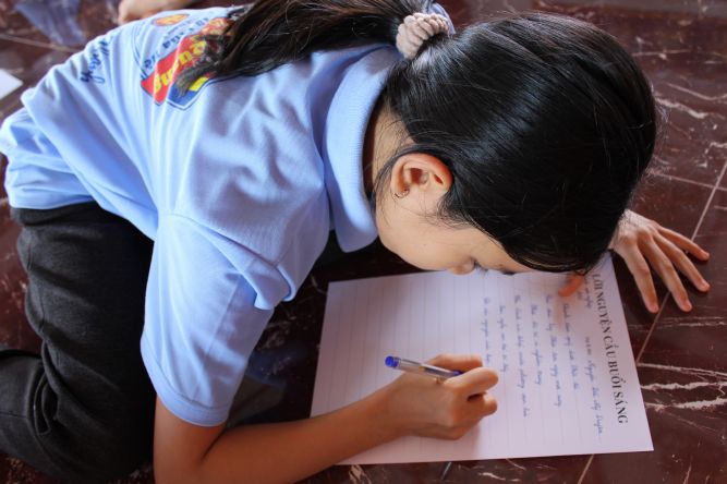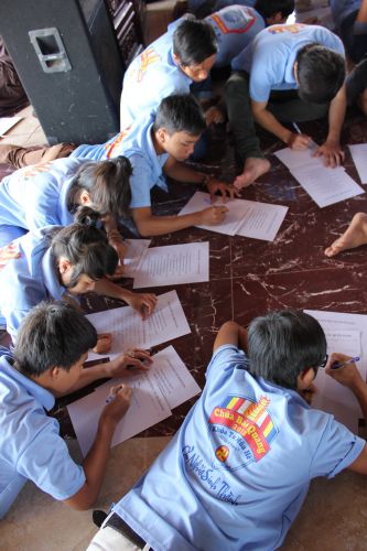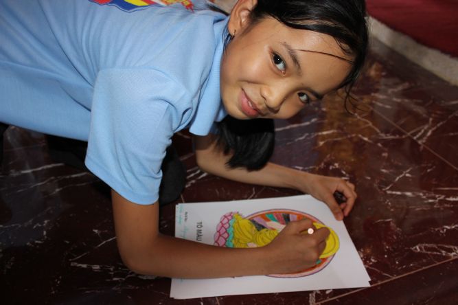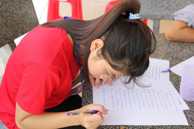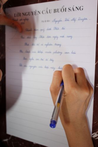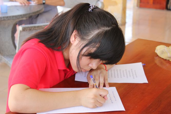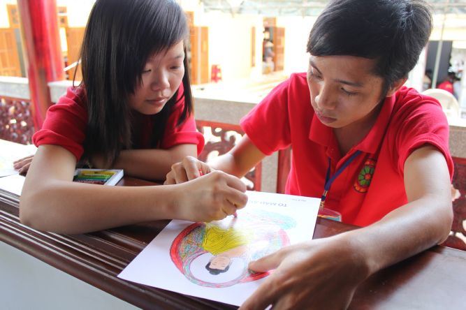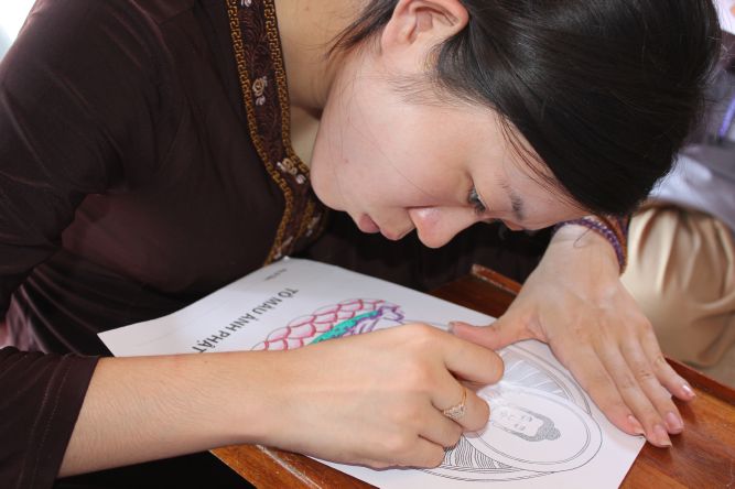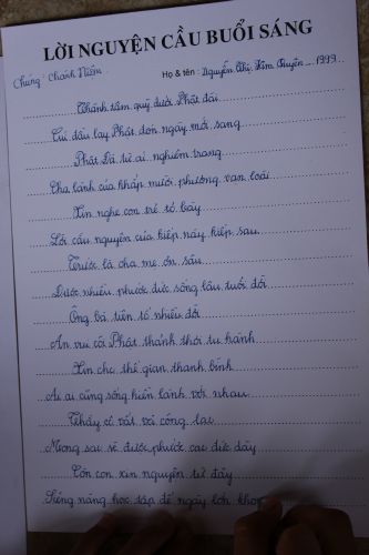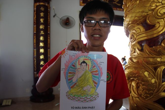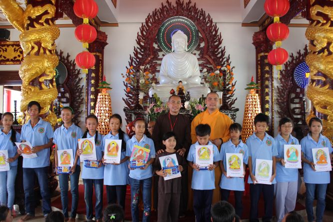 Cũng tại khóa tu “Ơn nghĩa sinh thành” này, ĐĐ. Thích Lệ Minh còn hướng dẫn các bạn trẻ viết chữ đẹp lời kinh Phật và tô tranh hình Đức Bổn Sư Thích Ca Mâu Ni Phật. Đại đức đã trực tiếp hướng dẫn các bạn trẻ ăn cơm trong chánh niệm theo nghi thức quá đường của Phật giáo, và cũng chính Thầy đã phát rất nhiều phần thưởng cho các bạn trẻ đạt thành tích xuất sắc trong hai phần thi tô tranh và viết lời kinh Phật.
