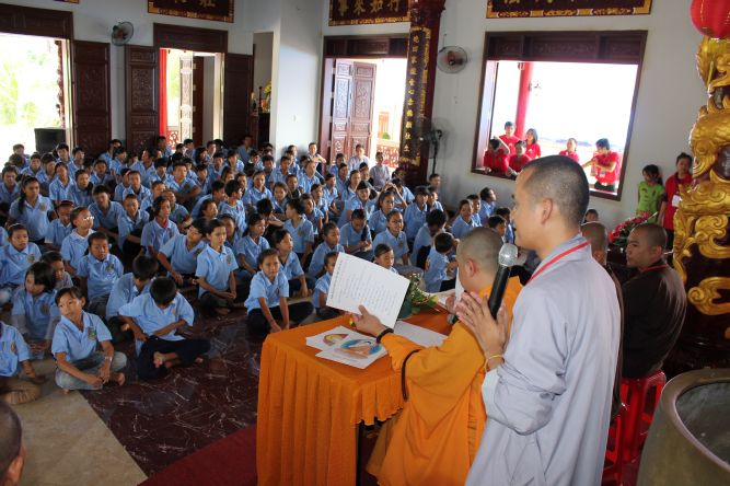 Sáng 13/7/2013, BTC khóa tu mùa hè tại chùa Bảo Quang hân hạnh đón tiếp ĐĐ. Thích Lệ Minh, Ủy viên BTS, Phó ban Văn hóa GHPGVN TP. HCM, hội phó hội Khai Tâm đã đến với các bạn trẻ tại khóa tu với chủ đề “Ơn nghĩa sinh thành” ở chùa Bảo Quang, huyện Cam Lâm, tỉnh Khánh Hòa với pháp thoại “Tình thương”.