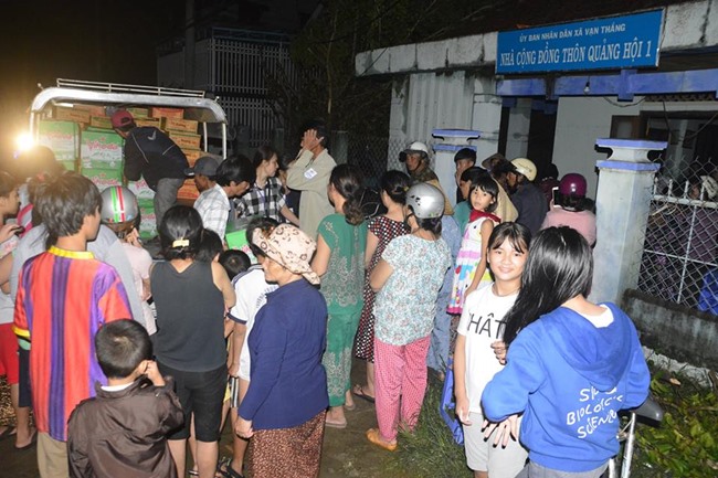 Theo đó,  ngày 06.11.2017, Nick name Hưng – TyTynguyen và bạn bè thân hữu  thành phố Nha Trang đã kịp thời chuyển 1.000 thùng mỳ và 3.000 chai nước sạch (1,5 lít) đến với bà con 8 thôn Tân Dân, Láng Dứa, Quảng Hội, Phú Hội, Suối Luồng, Bình Trung xã Vạn Thắng, huyện Vạn Ninh, tỉnh Khánh Hoà.