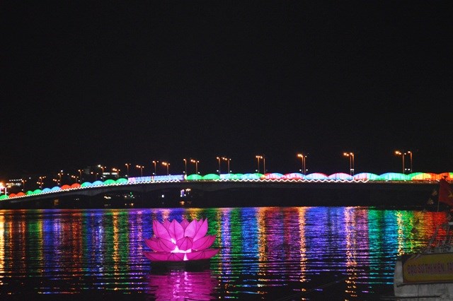 Sau phần niệm Phật hồi hướng, kết thúc buổi lễ là tiết mục bắn pháo hoa tầm thấp và thắp sáng Hoa đăng. 7 đóa sen sáng rực theo dòng chảy trên sông Cái Nha Trang báo hiệu niềm hân hoan của những người con Phật trên quê hương đất Khánh người Hòa kính mừng Đại lễ Phật đản Vesak 2019.