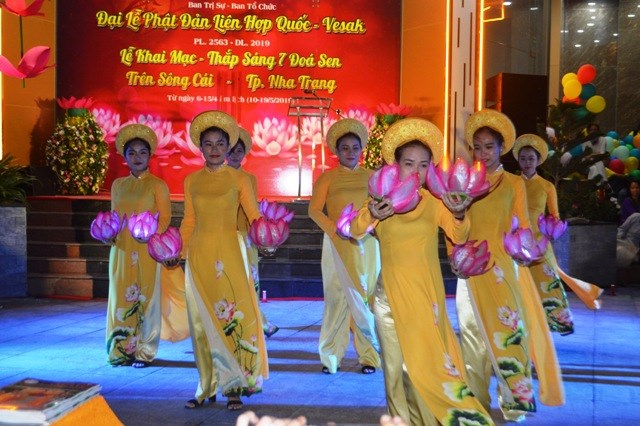 Vào lúc 19h00 tối 10/05/2019 tại Khách sạn Mường Thanh, đường Trần Phú, thành phố Nha Trang, tỉnh Khánh Hòa, Ban trị sự GHPGVN tỉnh Khánh Hòa đã long trọng tổ chức Lễ Khai mạc thắp sáng 7 đóa sen trên sông Cái Nha Trang kính mừng Đại lễ Phật Đản Vesak 2019.