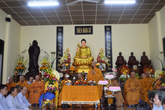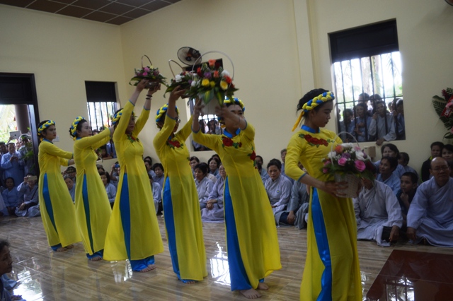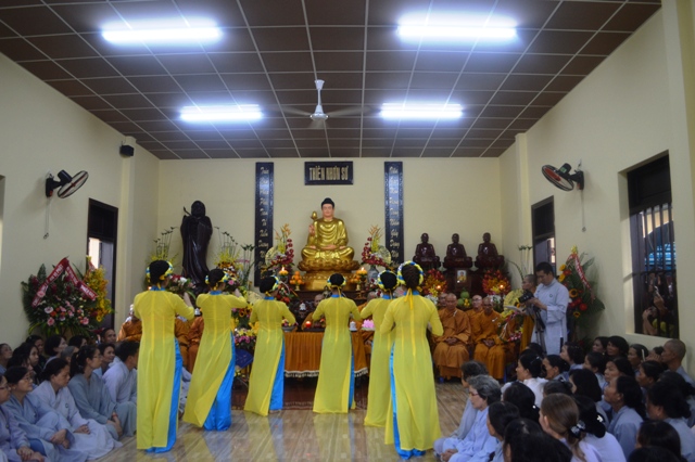 Nhân dịp này, Chư Tôn đức Tăng Ni các đạo tràng đã trao tặng hoa và quà chúc mừng . Buổi lễ kết thúc sau phần văn nghệ cúng dương của Nhóm Thiện Nguyện Từ Tâm, Gia đình Phật tử Chánh Quang và các văn nghệ sĩ Phật tử tại Khánh Hòa.