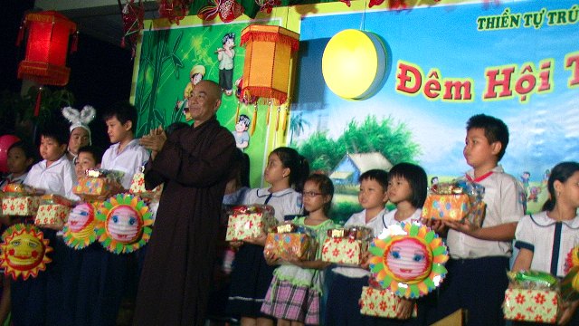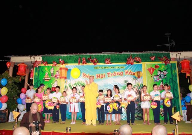 Tối 15-8-Giáp Ngọ (08-9-2014) tại Thiền tự Trúc Lâm Viên Giác thôn Võ Cạnh, xã Vĩnh Trung, TP. Nha Trang (Khánh Hòa) đã tổ chức văn nghệ “Đêm Hội Trăng Rằm” tặng 200 phần quà trung thu và 70 suất quà khuyến học cho các cháu học giỏi, trẻ em ở nông thôn xã Vĩnh Trung