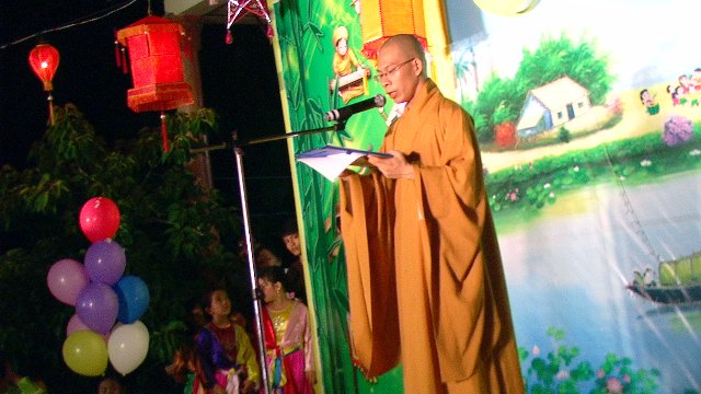 Phát biểu khai Hôi TT.Thích Thông Huệ khẳng định: “Ngày mới bắt đầu từ ban mai, năm mới bắt đầu từ mùa Xuân, con người bắt đầu từ tuổi trẻ. Tuổi trẻ hôm nay, thế giới ngày mai”, Thượng tọa chia sẻ mục đích ý nghĩa Văn nghệ Đêm Hội Trăng Rằm và cầu chúc cho tâm hồn mọi người sáng như Trăng Rằm và cuộc sống luôn ngọt ngào như những chiếc bảnh Trung thu, mang thông điệp của sự yêu thương chan rải khắp muôn nơi…