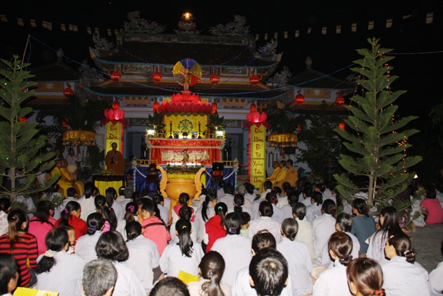 Sau phần khai lễ tắm Phật của Hòa thượng Chứng minh, Đại đức Trú trì và chư tôn đức tăng cùng quý quan khách, Phật tử, đồng bào thập phương, mọi người không ai bảo ai, tuần tự tiến về hướng đức Phật đản sinh, múc gáo nước tắm trên mình đức Thế tôn, một dạ chí thành tri ân đấng từ phụ, đã hy sinh cả cuộc đời vương giả cho sự nghiệp hòa bình và mang thông điệp yêu thương đến cho toàn nhân loại.