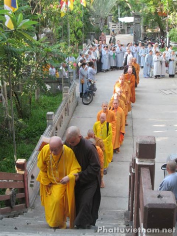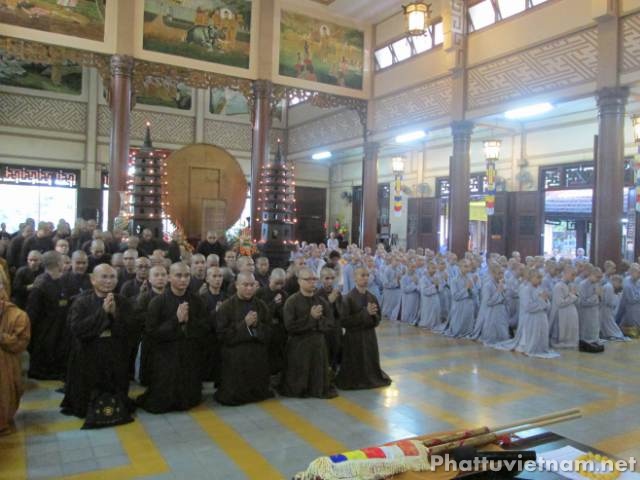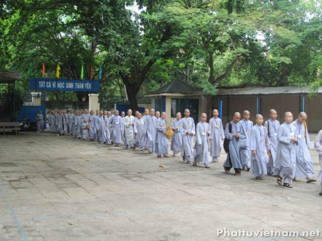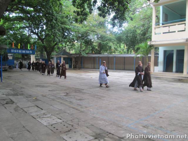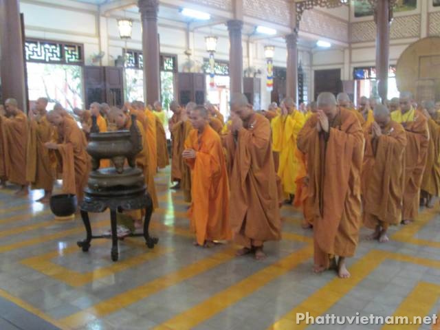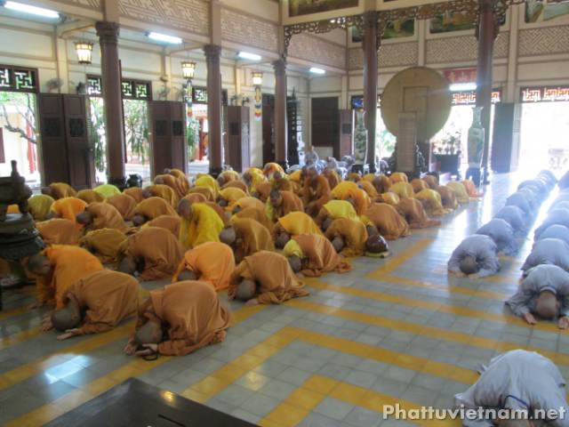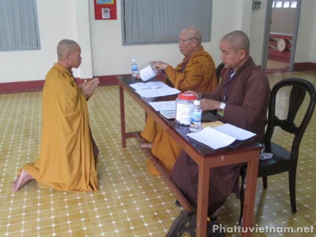Vào lúc 14 giờ chiều cùng ngày các giới tử sẽ thi phần tụng 4 bộ Luật tiểu.