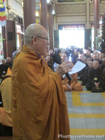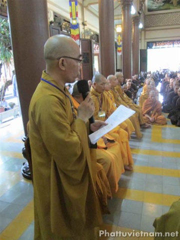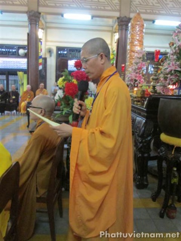 Sau lời tuyên bố lý do và giới thiệu thành phần tham dự, Hòa thượng Thích Trí Viên, Phó ban kiêm chánh chủ khảo Đại giới đàn tuyên đọc diễn văn khai mạc khảo thí, nhấn mạnh tầm quan trọng của việc khảo hạch chọn người làm Phật.