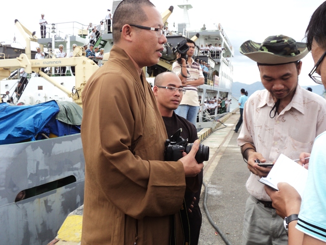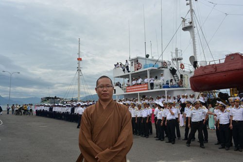 HT. Thích Quảng Thiện đã làm lễ cầu nguyện an lành trên buồng lái Tàu HQ.996, trước khi thuyền trưởng cho tàu xuất phát .