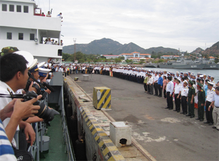 Được biết đây là đợt thay quân thường xuyên hằng năm của Trường Sa, ra tiển quý Thầy, cán bộ, tân binh lên đương nhận nhiệm vụ tại huyện đảo Trường Sa có Ông Trần Sơn Hải -Phó Chủ tịch UBND tỉnh, Ông Nguyễn Viết Thuân – Chủ tịch UBND huyện đảo Trường Sa, các Ban ngành đoàn thể của tỉnh và đông đảo thân nhân tân binh ra đảo.