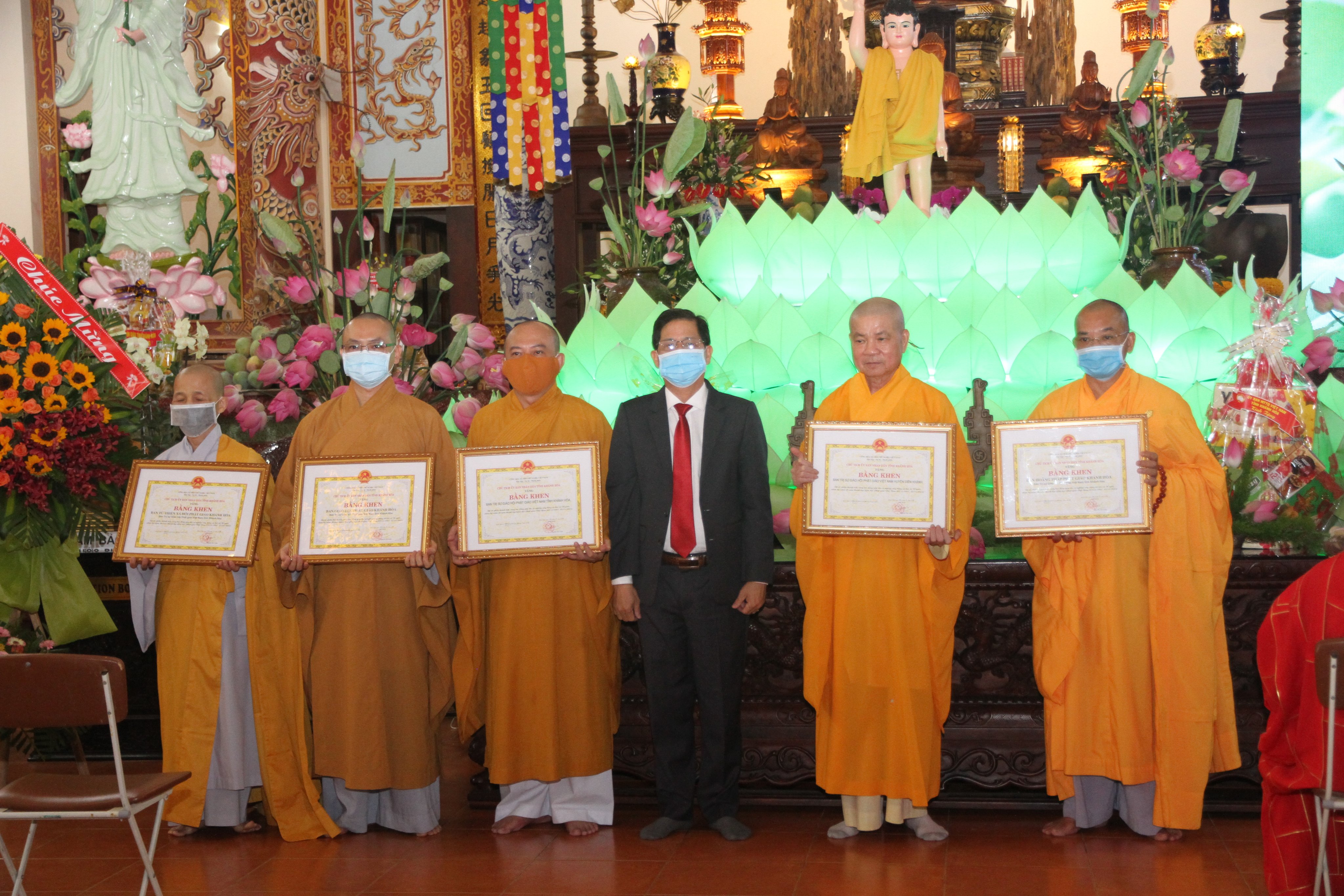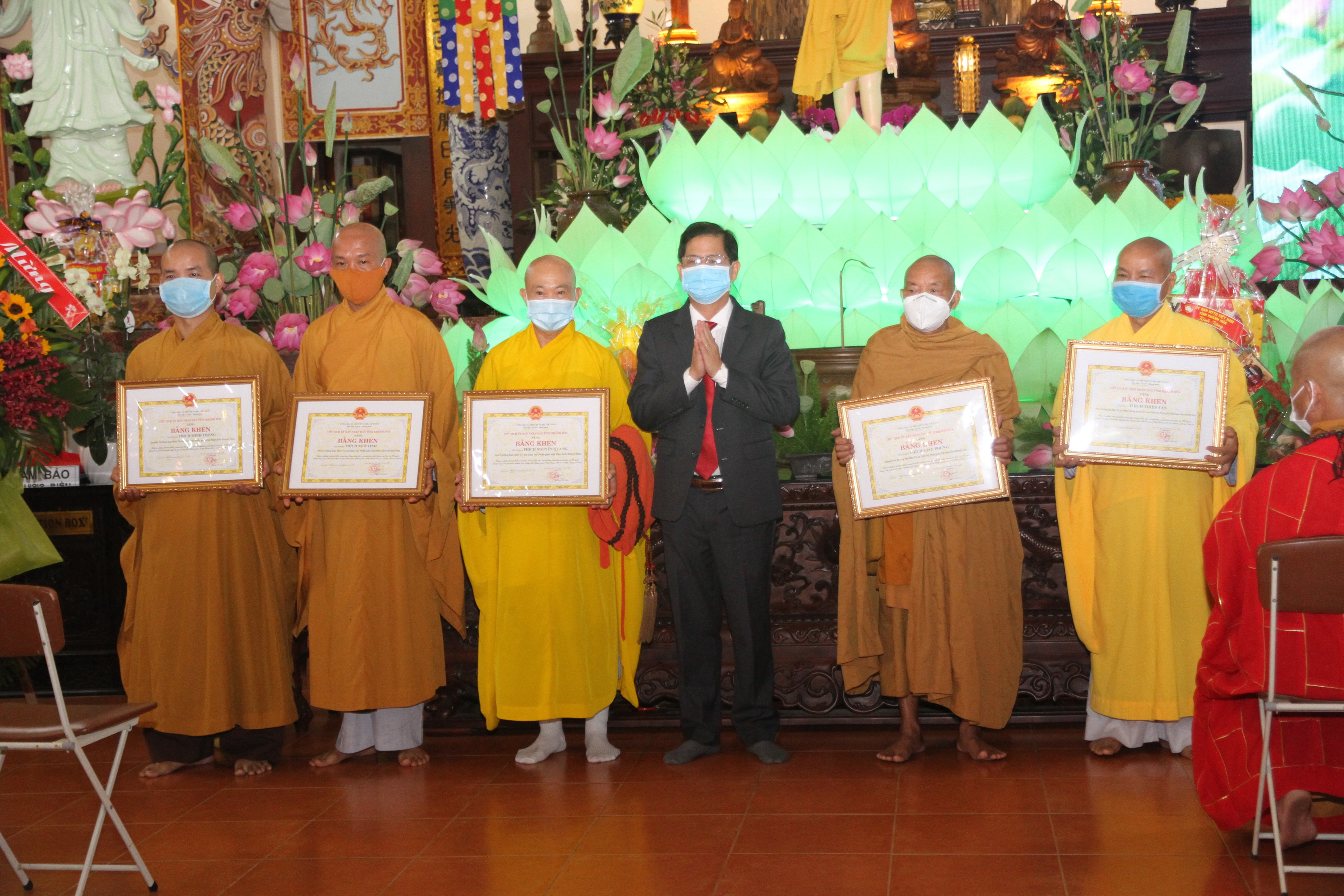 Ông Nguyễn Hữu Dinh thay mặt chính quyền tỉnh Khánh Hòa đọc quyết định trao tặng bằng khen cho những tập thể và cá nhân có những đóng góp nổi bật của Phật giáo Khánh Hòa trong thời gian qua. Đây là một lời động viên kịp thời, khuyến khích Tăng ni, Phật giáo tỉnh tiếp tục nỗ lực hết mình trên con đường phụng sự đạo pháp và dân tộc.